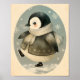 Brighten your baby's nursery with this delightful wall art of a chubby penguin gliding on ice skates, wrapped in a cozy scarf amid falling snowflakes. Vintage charm in soft blues and whites, ideal for winter-themed rooms, holiday gifts, or whimsical child decor.