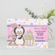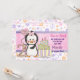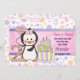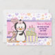 Sweet Penguin Baby has fun balloon, cake, hair bow and text art number two. Background is pastel flowers and cupcakes. All this text is ready for you to customise with your information. Matching button, tshirts and other gift items available in my store.