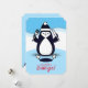 Cute penguin with fork and knife, ice fishing for a holiday treat on this Christmas to/from "from the kitchen of" card for chefs, catering, restaurants and seafood vendors for gifting their list with homemade cooking and baking like Christmas cookies, cakes, breads, sauces and savory foods, treats and sweets.