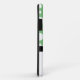 Cute and classy iPhone 5 Case designed in a green and white assorted polka dots pattern, with an adorable little rounded black penguin, and custom printed with your name or personalised text.