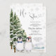 Penguin He or She Evergreen Winter Gender Reveal invitation
