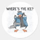 A penguin dressed in a blue coat, hat, and scarf carries her ice skates and asks "Where's The Ice?". This cute penguin ice skater design on T-shirts, cards, mugs, tote bags, and other items is perfect for figure skaters!