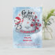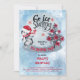 Cute penguin in ice skates skating around on the skating pond with a red poinsettia adorned Christmas tree and snow falling all around. Design is in red, grey, dusky blue and black with touches of white. Simply personalise with birthday party details. Back features a snowfall pattern over a red background. Composite by Holiday Hearts Designs.