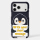 A friendly stylized penguin holds a sign with concise, attention-grabbing copy. The penguin's simple shapes, balanced silhouette, and clear facial expression convey warmth and approachability. The sign is positioned for easy readability, with generous negative space and a legible type style. The overall tone is upbeat and inviting.