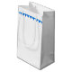 A holiday design featuring a penguin in a Santa hat. A border of blue flags across the top of bag.