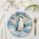 Penguin In Cream Blue Abstract Waves Paper Plate