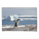 A Gentoo penguin walking in front of an arch out of ice. The image was taken in Antarctica.