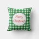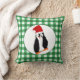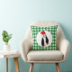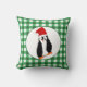 Penguin in Santa Hat Green Gingham Merry Christmas Cushion
