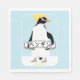 A cute Victor illustration of a yellow eyed Penguin. This yellow eyed penguin is holding a banner that reads Penguin in kanji, Japanese writing. A design for anyone who loves Penguins or the Japanese language.