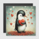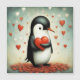 A adorable little penguin and hearts.