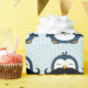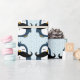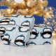 A cute blue chubby penguin with a huge black trendy moustache illustration with a blue background.