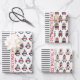 Penguin, panda, bear and stripes Wrapping Paper Sheets. One sheet displays a cute pattern of penguins and stripes. The second features a panda pattern and the third a bear. There also is the text "Merry Christmas" in red on a white band on all sheets. Personalise it with your text.
