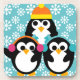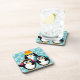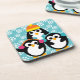 Penguin Party coasters, perfect for the entire winter, great at Christmas, and so cute and colourful it'll cheer your every day! Penguins on a background of teal blue with white snowflakes.