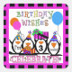 Penguin Party custom birthday stickers features four penguins, balloons, birthday ballons, bright colours, and an area you can add your child's age!