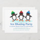 Penguin Trio Boys Ice Skating Birthday Party Invitation