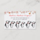 Cute penguin waiter serving a ball of yarn with knitting needles on this knitter's business card with doodle flowers background.