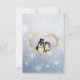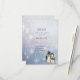 Sweet Wedding RSVP features cute Penguin bride and groom in their wedding attire with winter snowflake blue and white background with a touch of purple. . Back of card in matching snowflake pattern and bride and groom penguins in a gold heart. Replace the date here with the correct wedding date. You may also customise the other RSVP text if you wish. Matching items available on other products in my store.