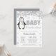 Penguin Winter Baby Shower Snowflake Invitation. Grey Snowflake. Baby its cold outside Baby Shower invitation. Boy or Girl Baby Shower Invitation. Winter Holiday Baby Shower Invite. White Background. For further customisation, please click the "Customise it" button and use our design tool to modify this template.