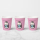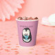 These personalised paper party cups are perfect for birthday parties and Christmas parties with their cute illustration of a penguin holding a wrapped present against a pink background. Use the fill-in-the-blank template field to easily personalise these party supplies with your own name or message.