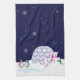 This beautiful towel has a cute little penguin couple sitting by their icy pond and an adorable family of polar bears roaming around on a starry night in the snow.
