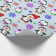 Adorable red, green, purple, light blue snowflakes and penguins festive Holiday Christmas wrapping paper.
