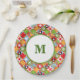 Penguins Christmas Monogram Paper Plates. Whimsical penguins, pretty circles pattern Holiday monogram plate.