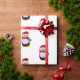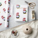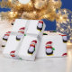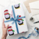 Penguin with Santa hat and scarf on Christmas wrapping paper