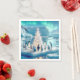 Penguins gather around a beautifully decorated white Christmas tree on an icy floe and the Northern Lights ethereal glow illuminates the snowy landscape