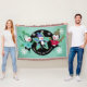 Penguins Holly Jolly Christmas holiday throw blanket features a beautiful design featuring a white dots on blue background, a black ring, blue star centre, snowflakes of white, three adorable penguins with sweaters, winter hats, ice skates, and scarves, and customisable white text that reads Have a Holly Jolly Christmas!