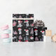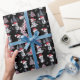 Penguins in Santa Hats Winter Scene Black Pattern Wrapping Paper