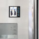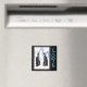 The design on this Magnet is two Emperor Penguins facing each other illustrated with water colour pencils. In the background are small, painted yellow love hearts behind two large blue love hearts centred behind the penguins. Framed in a thin, white border line within a thick black border. The word LOVE is beside the image.