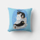 Napping Penguins design for child's room or nursery. Cute napping penguins on an iceberg with snowflakes falling on a blue pillow with personalised name.