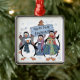 Five adorable penguins dressed in winter garb stand near a sign that reads "North Pole Boulevard" on Penguins North Pole Holiday keepsake ornaments.