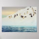 Adelie penguins rest on the slope of an iceberg in the waters along the Antarctic Peninsula.