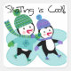 Two penguins ice skate on the frozen pond dressed in striped, colourful winter hats, scarves, and mittens and black text reads Skating is Cool on skating theme T-shirts, mugs, cards, bags, keepsakes, pillows, hoodies, stickers, and much more!