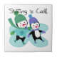 Two penguins ice skate on the frozen pond dressed in striped, colourful winter hats, scarves, and mittens and black text reads Skating is Cool on skating theme T-shirts, mugs, cards, bags, keepsakes, pillows, hoodies, stickers, and much more!