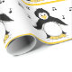 A cute design featuring cartoon penguins surrounded by musical notes.