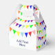 Decorative pennant banner. Custom white favour boxes. Edit text to customise. Party decor idea.
