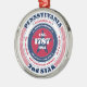 Show your state pride this holiday season with this unique Pennsylvania 2nd state Christmas ornament. It has red, white, and blue patriotic colours with a circular typography design on a white background. The text includes facts about the state, such as its name, capital, state abbreviation, region, time zone, geographic coordinates, the year of its statehood, and its resident's name. It's a great gift for those who wish to celebrate their state or for those who are feeling nostalgic about their home state.
