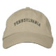 A Basic Adjustable Cap embroidered with the (customisable) text Pennsylvania. Select the hat and text colour and style of your choice.