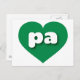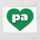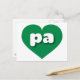 This postcard features a vibrant green heart containing the bold, rounded, white lower case letters pa, a playful version of the abbreviation for Pennsylvania, the keystone state. The reverse side of the postcard is blank, awaiting your custom text or handwritten sentiments.