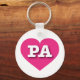This keychain features a vibrant hot pink heart containing the bold, white, upper case letters PA, the official abbreviation Pennsylvania, the keystone state.