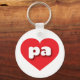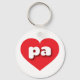 This key chain features a vibrant red heart containing the bold, white, rounded lower case letters pa, a playful abbreviation for Pennsylvania, the keystone state.