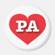 This magnet features a vibrant, red heart containing the bold, white, upper case letters PA, the official abbreviation for Pennsylvania, the keystone state.