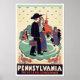 A beautiful vintage poster image advertising Pennsylvania. The little red schoolhouse is in the background. This poster would look great on any wall. Look for framing options.