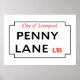 Penny Lane ~ City of Liverpool ~ L18 ~ Street Sign Poster.