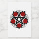 Black pentagram with pattern, decorated with blooming, red roses with leaves on white background. Tattoo style.