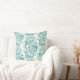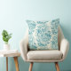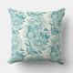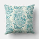 Peonies and butterflies block print, lagoon Blue Cushion
