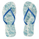 Peonies and butterflies block print, lagoon Blue Flip Flops