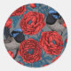 Peonies and wrens classic round sticker